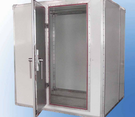 屏蔽機房的地板是電磁波的唯一反射器。對地板的要求是:連續平整,無凹凸。 不得有任何間隙超過zui低工作波長1: 10,以保持地板的導電連續性。屏蔽暗室接地線和電源線應貼在墻腳上,不要穿過房間,電線也應佩戴金屬管,并保持金屬管道與地板的良好連接。為了避免無線電波反射對測量誤差的影響,測試人員和測試控制設備不應在測試現場。因此,普通EMC暗室 由測試暗室和控制室組成。測試天線和設備放置在測試暗室,操作人員和測試控制儀器位于控制室。如果有高功率放大器設備,我們也應該設置一個功率放大 室來放置這些設備,以免干擾周圍的環境。暗室和控制室應采用獨立的電源系統,采用不同相位的電源,通過各自的濾波器,避免控制室通過電源線進入暗室。屏蔽機房只是一個很大的鐵盒子,可以阻擋室內外的無線電信號。-般來說,里面不能出去,外面不能進去,但里面的電磁波會反射出來,疊加在內壁上。